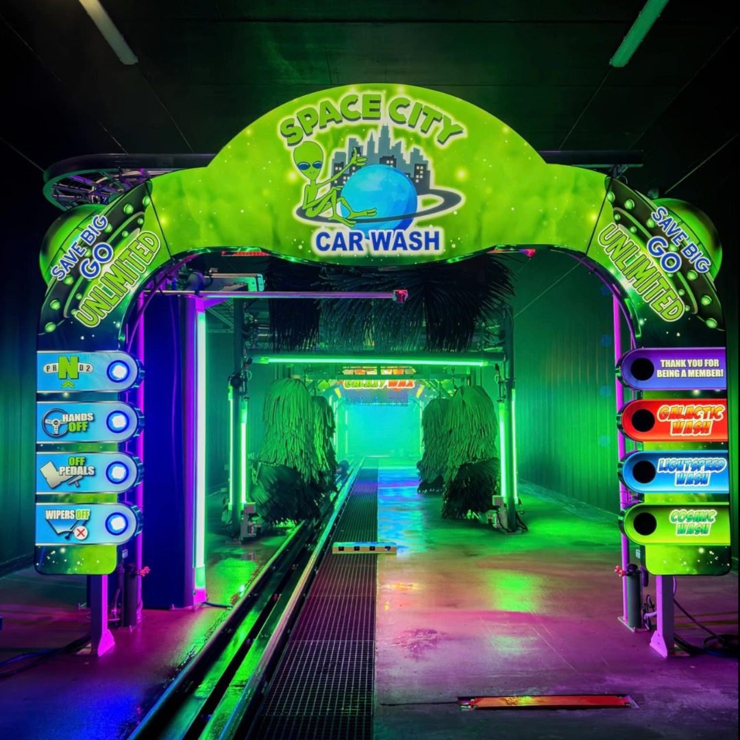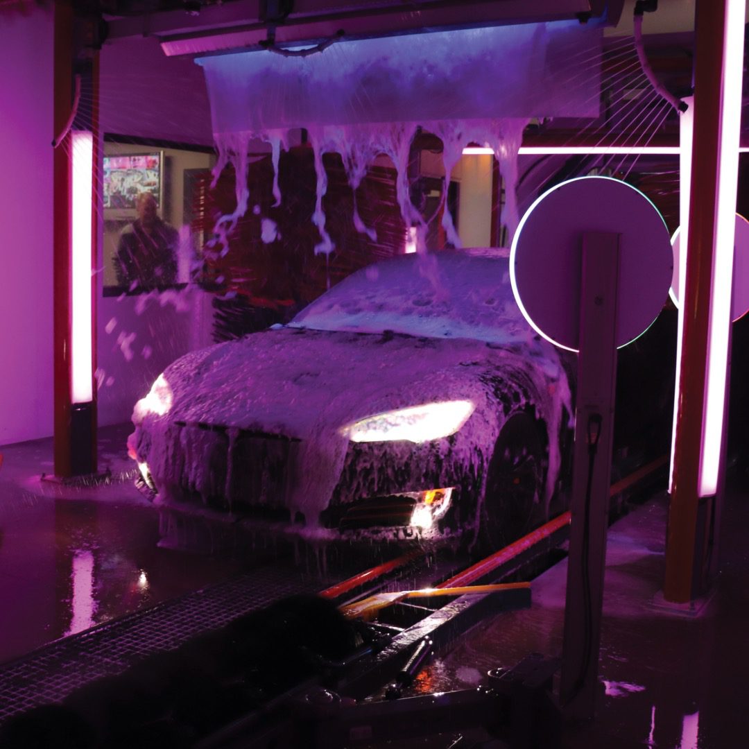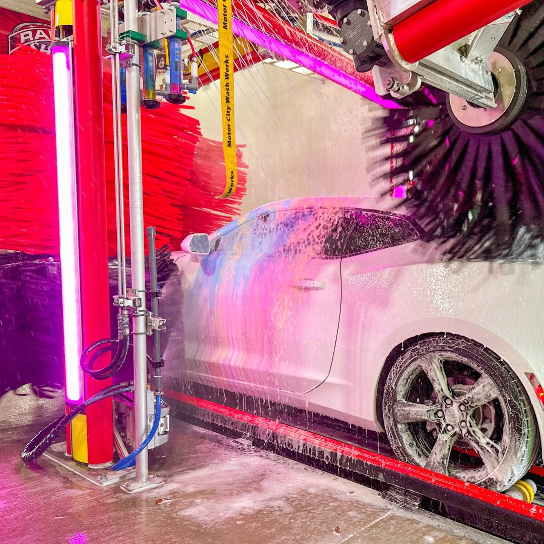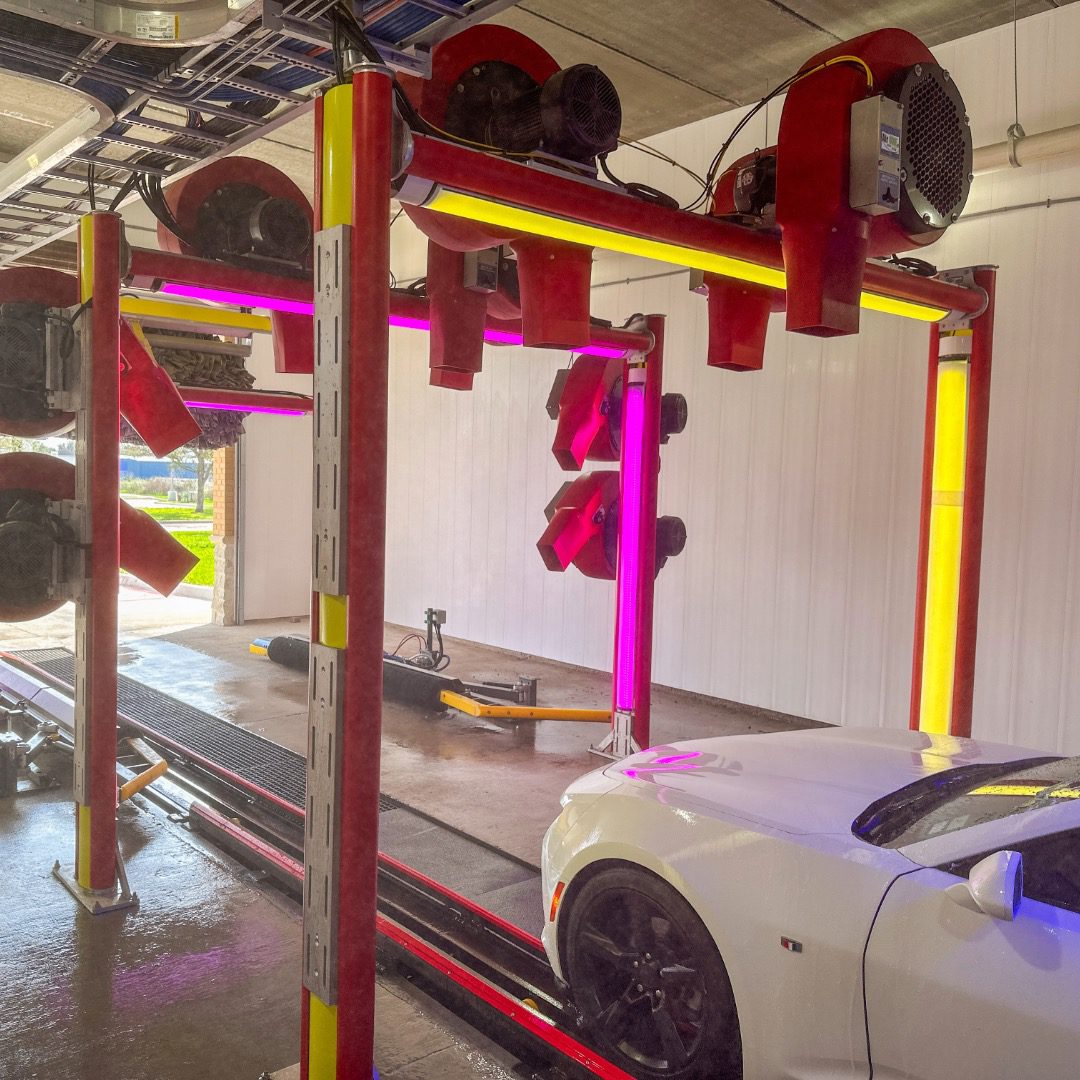 Fully integrated RGB-LED light fixtures are engineered to fit perfectly into the Motor City Wash Works equipment structure without compromising our utility chase-way design.  The Glowash upgrade delivers a clean and beautiful finished product.